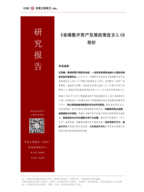 【中国工商银行(亚洲)东南亚研究中心】【20250719】香港数字资产发展政策宣言2.0简析报告-14页 政策文件