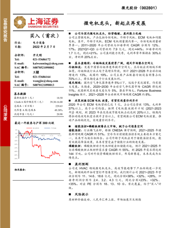 【上海证券】【20220207】微光股份-002801.SZ-微电机龙头,新起点再发展-41页 行业研究