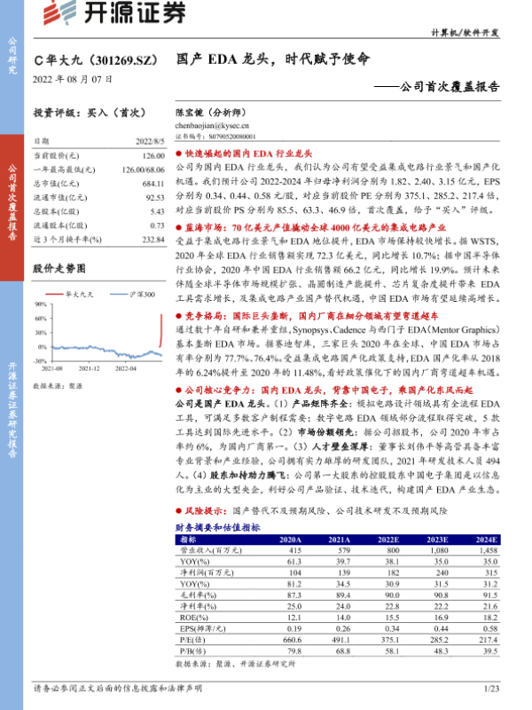 【开源证券】【20220807】深度报告-20220807-开源证券-华大九天-301269.SZ-公司首次覆盖报告_国产EDA龙头_时代赋予使命-23页 行业研究