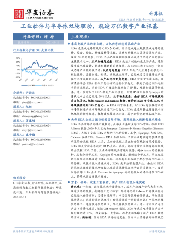 【华安证券】【20210916】EDA行业系列报告(一):工业软件与半导体双轮驱动,筑造万亿数字产业根基-57页 行业研究