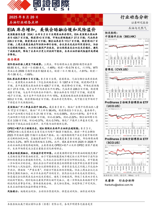 【国证国际】【20250820】石油行业动态点评:EIA库存增加,美俄会晤融洽缓和风险溢价-5页 证券期货研究报告