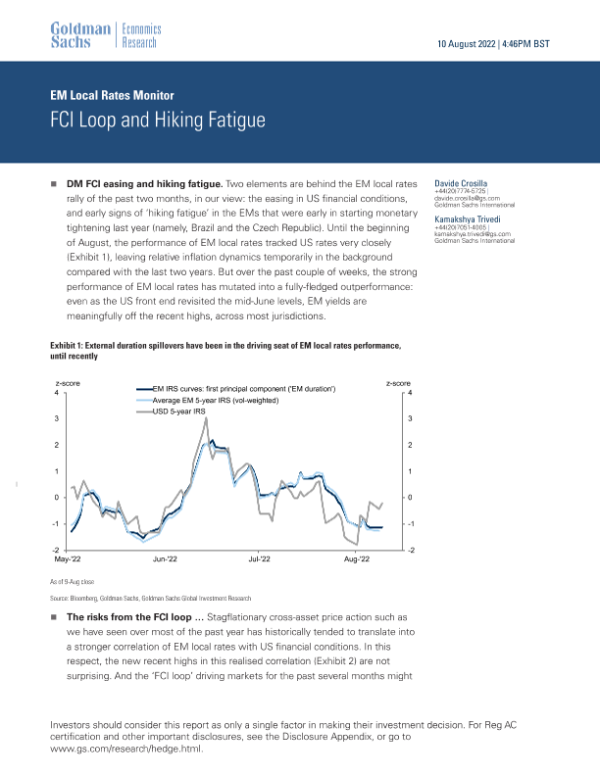 【Goldman Sachs】【20220810】EM Local Rates Monitor FCI Loop and Hiking Fatigue-17页 行业研究