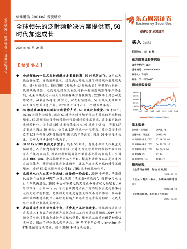 【东方财富证券】【20200320】20200320-东方财富证券-信维通信-300136.SZ-深度研究:全球领先的泛射频解决方案提供商,5G时代加速成长-34页 行业研究