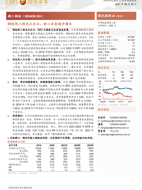 【海通证券】【20210820】精工钢构-600496.SH-钢结构工程龙头企业,核心业务稳步增长-18页 公司研究
