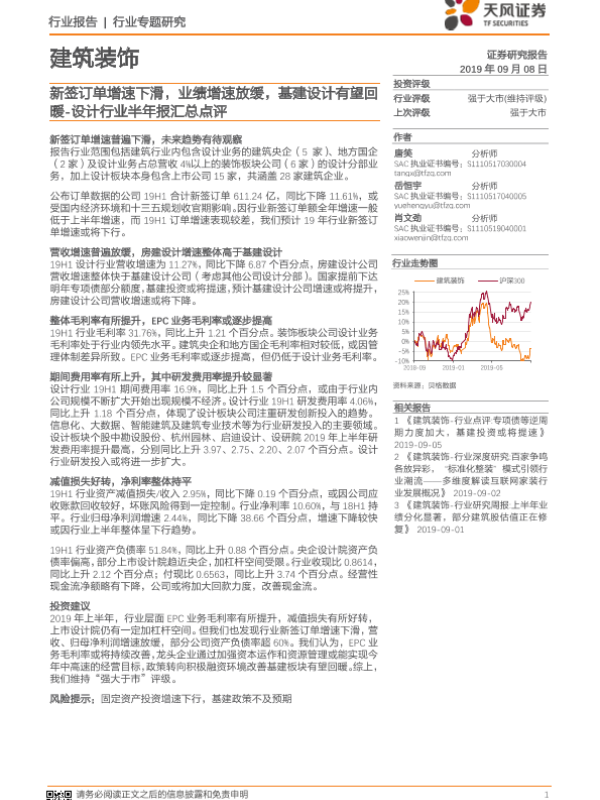 【天风证券】【20190908】建筑装饰行业专题研究:设计行业半年报汇总点评-15页 行业研究