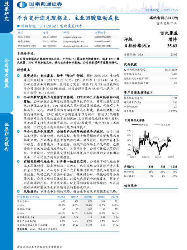 【海通国际】【20250729】瑞纳智能-平台交付迎兑现拐点,主业回暖驱动成长-28页 证券期货研究报告