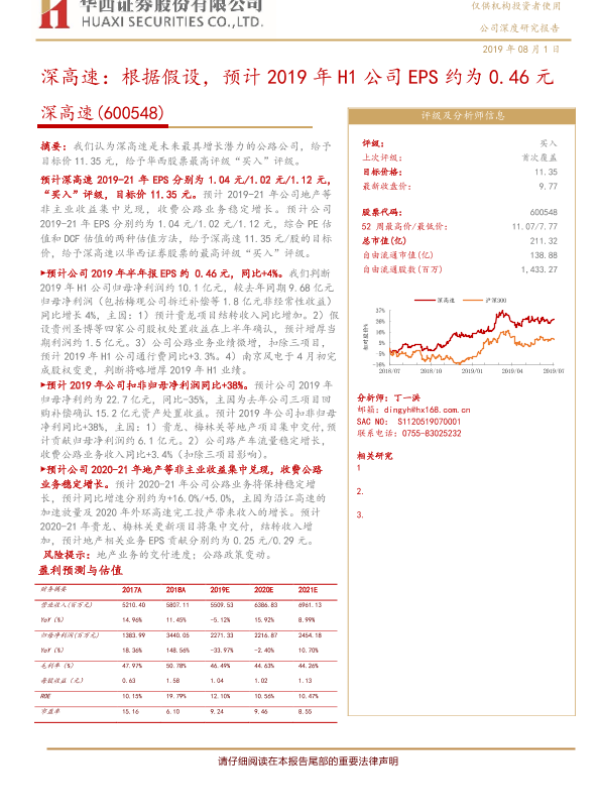 【华西证券】【20190801】深高速:根据假设,预计2019年H1公司EPS约为0.46元-13页 行业研究
