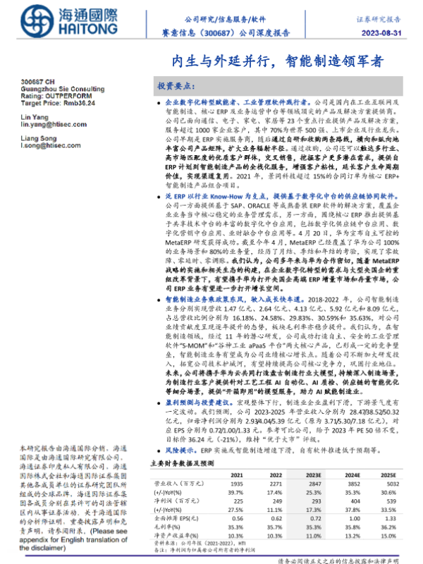 【海通证券】【20230828】赛意信息:内生与外延并行,智能制造领军者-34页 行业研究