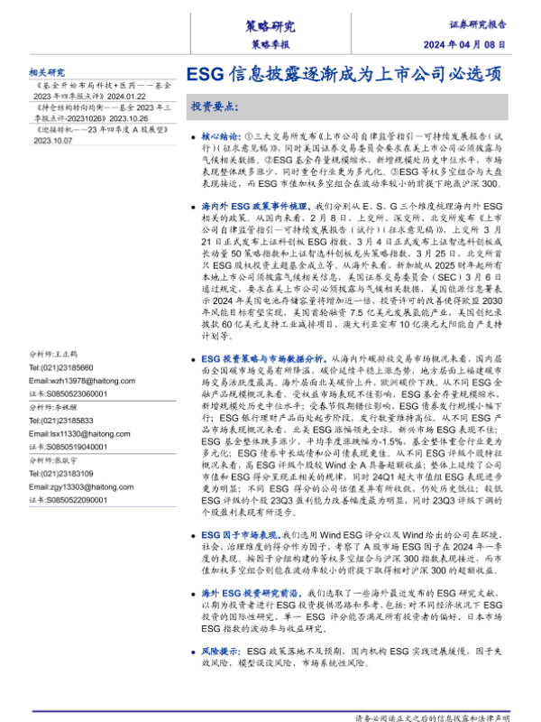 【海通证券】【20240408】策略季报:ESG信息披露逐渐成为上市公司必选项-22页 行业研究