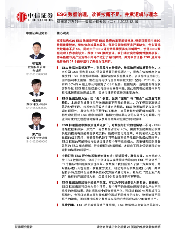 【中信证券】【20221219】机器学习系列_数据治理专题(二):ESG数据治理,改善披露不足,并重逻辑与理念-28页 行业研究
