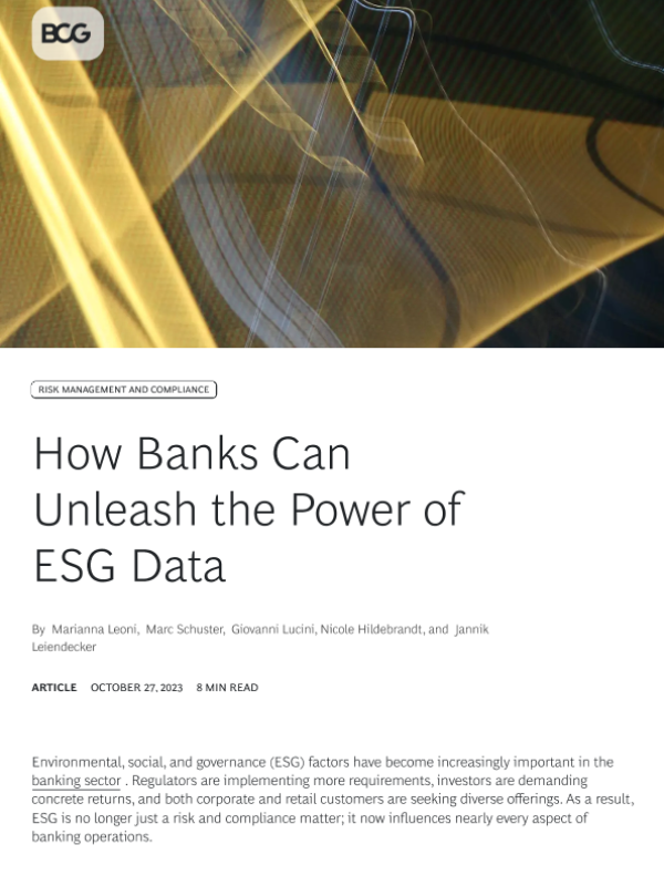 【Boston Consulting Group】【20231027】How Banks Can Unleash the Power of ESG Data-9页 行业研究