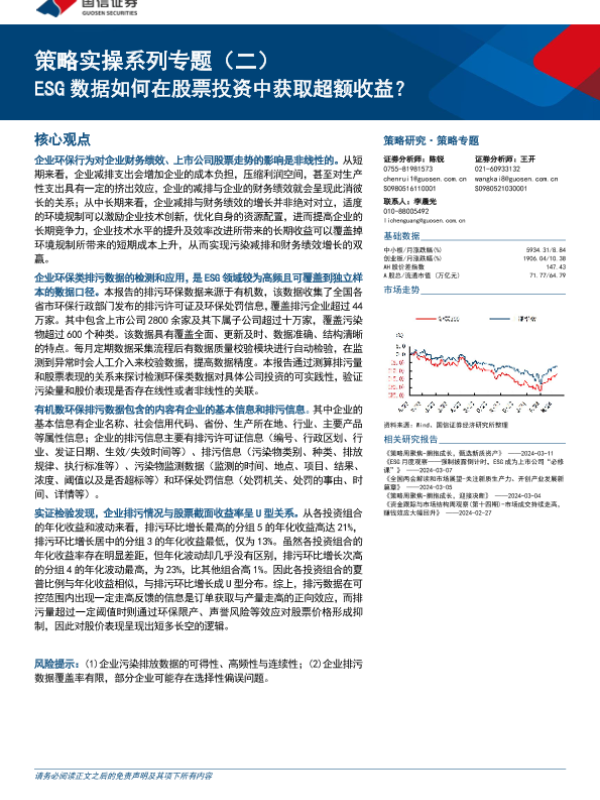【国信证券】【202403】策略实操系列专题(二):ESG数据如何在股票投资中获取超额收益?-18页 行业研究