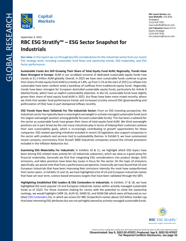 【RBC Capital Markets】【20220909】RBC ESG Stratify™ – ESG Sector Snapshot for Industrials-16页 行业研究
