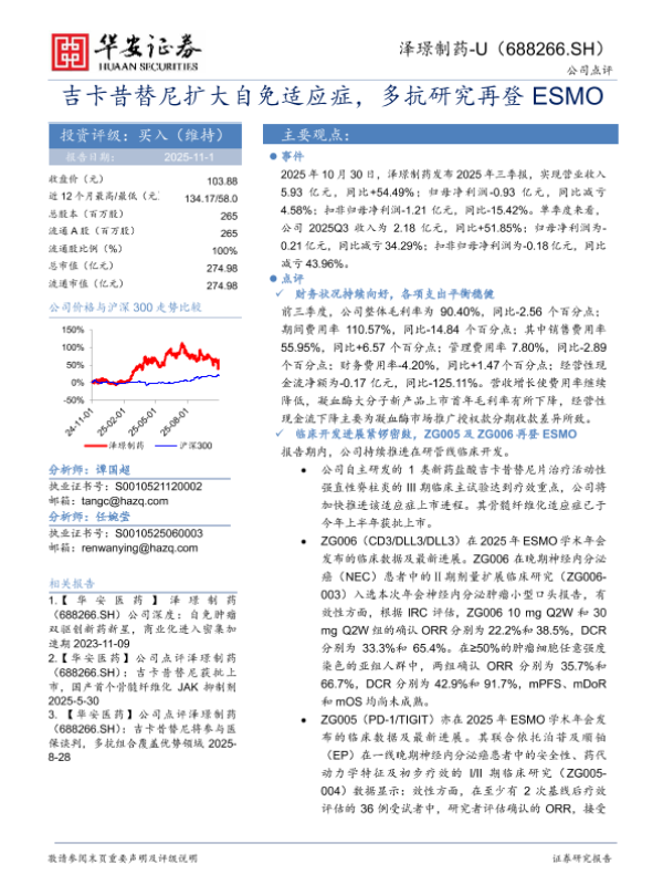 【华安证券】【202511】吉卡昔替尼扩大自免适应症,多抗研究再登 ESMO-4页 证券期货研究报告