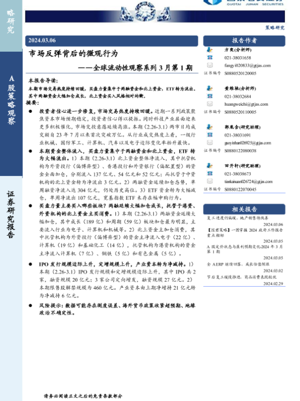 【国泰君安证券】【20240306】全球流动性观察系列3月第1期:市场反弹背后的微观行为-24页 行业研究