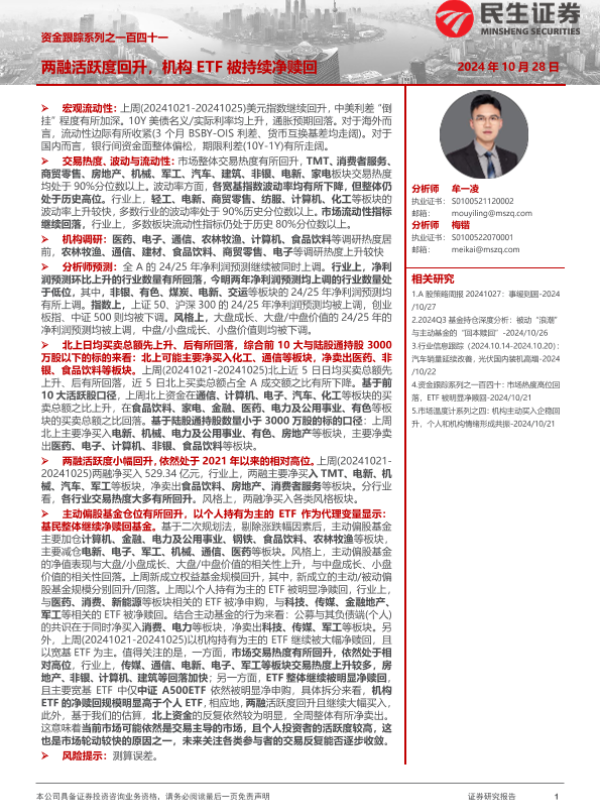 【民生证券】【20241028】资金跟踪系列之一百四十一:两融活跃度回升,机构ETF被持续净赎回-34页 行业研究
