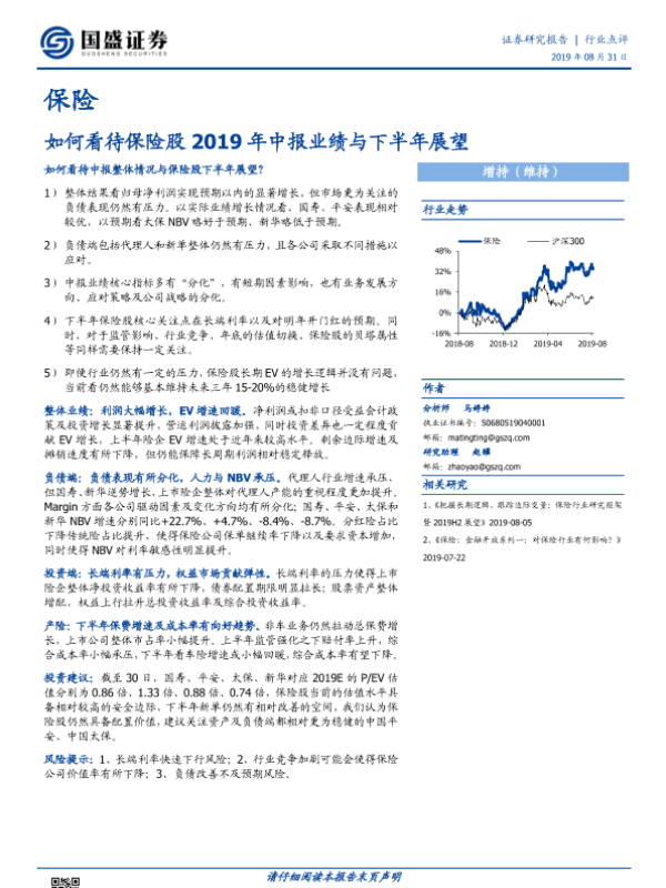 【国盛证券】【20190831】如何看待保险股2019年中报业绩与下半年展望-13页 行业研究