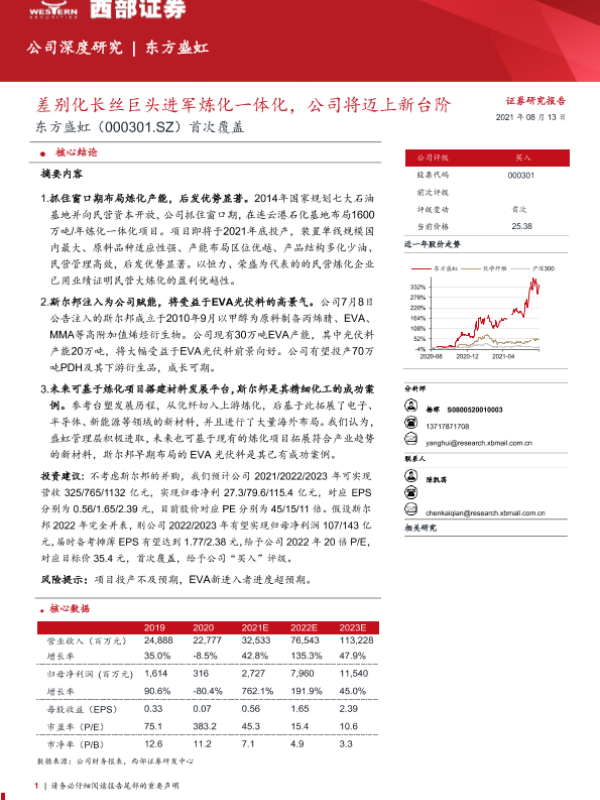 【西部证券】【20210813】差别化长丝巨头进军炼化一体化,公司将迈上新台阶-42页 行业研究