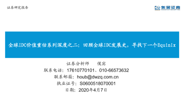 【东吴证券】【20200407】全球IDC价值重估系列深度之二:回顾全球IDC发展史,寻找下一个Equinix-73页 行业研究