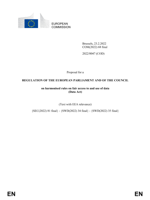 【EUROPEAN COMMISSION】【20220223】Proposal for a REGULATION OF THE EUROPEAN PARLIAMENT AND OF THE COUNCIL on harmonised rules on fair access to and use of data (Data Act)-64页 政策文件