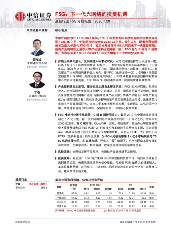 【中信证券】【20200728】20200728-中信证券-通信行业F5G专题报告:F5G:下一代光网络的投资机遇-12页 行业研究