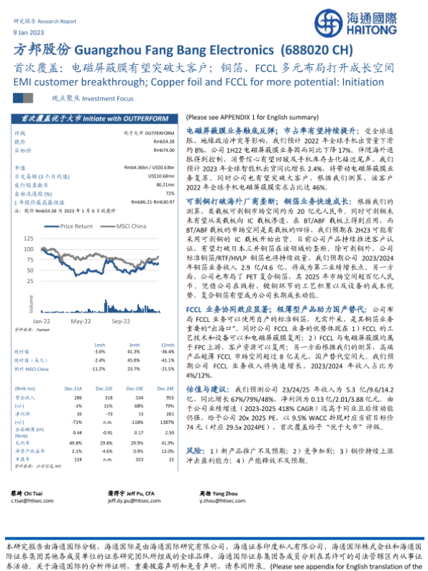 【海通国际】【20230109】20230109-海通国际-方邦股份-688020.SH-首次覆盖:电磁屏蔽膜有望突破大客户;铜箔、FCCL多元布局打开成长空间-30页 行业研究