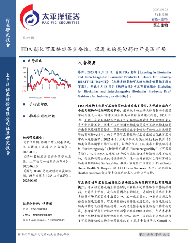 【太平洋证券】【20230922】医药生物行业周报:FDA弱化可互换标签重要性,促进生物类似药打开美国市场-17页 行业研究