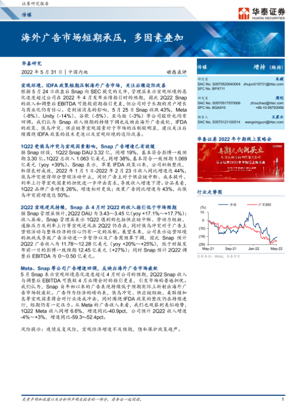 【华泰证券】【20220531】海外广告市场短期承压,多因素叠加-6页 行业研究