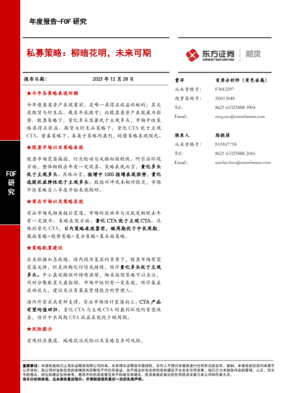 【东证期货】【20231228】FOF研究年度报告:私募策略:柳暗花明,未来可期-27页 行业研究
