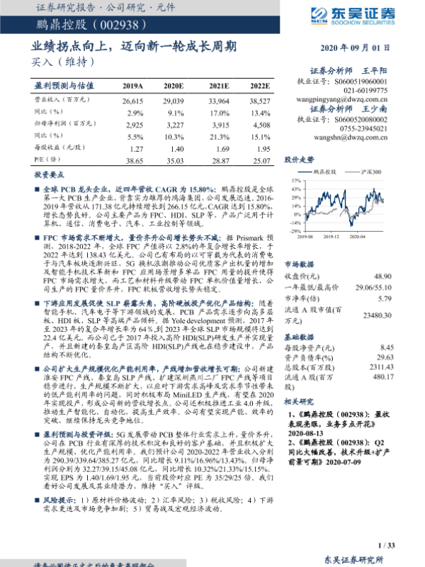 【东吴证券】【20200901】20200901-东吴证券-鹏鼎控股-002938.SZ-业绩拐点向上,迈向新一轮成长周期-33页 行业研究