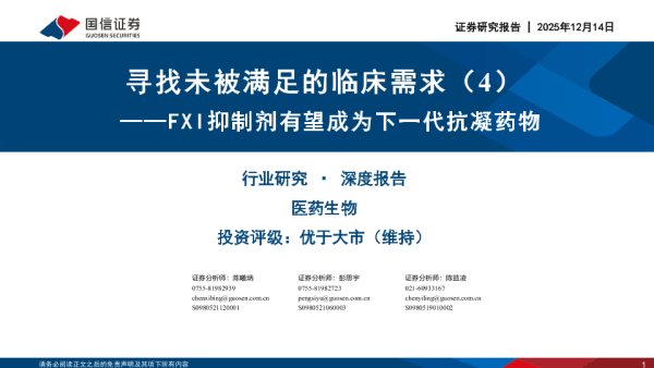 【国信证券】【202512】寻找未被满足的临床需求(4):FXI抑制剂有望成为下一代抗凝药物-46页 证券期货研究报告
