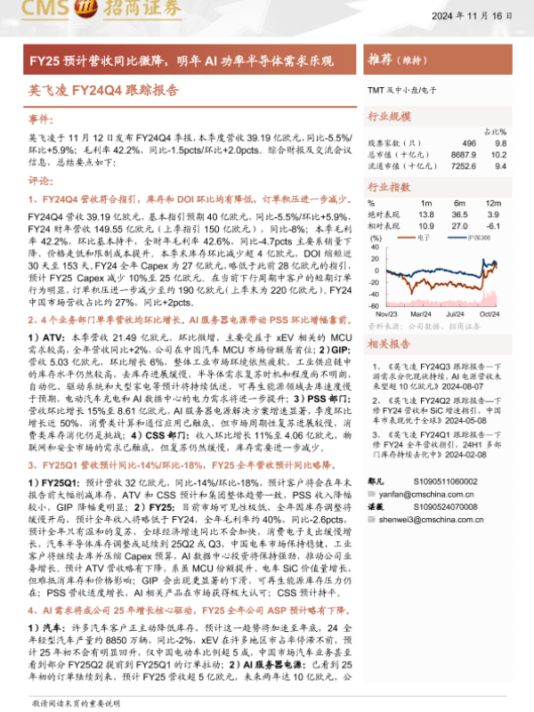 【海通证券】【20241116】20241116-招商证券-英飞凌FY24Q4跟踪报告:FY25预计营收同比微降,明年AI功率半导体需求乐观-17页 行业研究
