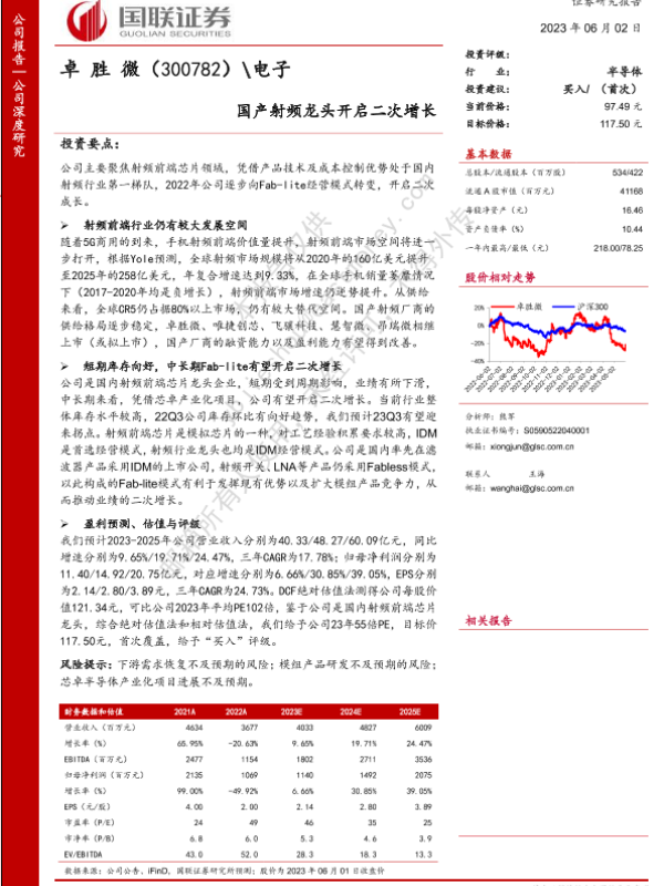 【国联证券】【20230602】卓胜微(300782)国产射频龙头开启二次增长-24页 行业研究
