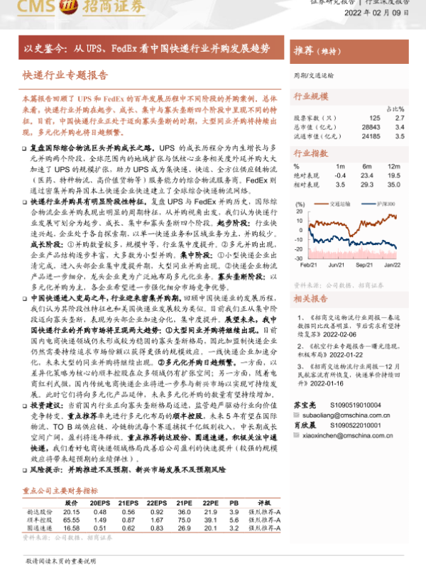 【海通证券】【20220209】快递行业专题报告:以史鉴今,从UPS、FedEx看中国快递行业并购发展趋势-27页 行业研究