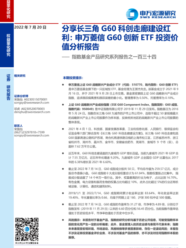 【申万宏源】【20220720】指数基金产品研究系列报告之一百三十四:申万菱信G60创新ETF投资价值分析报告,分享长三角G60科创走廊建设红利-16页 行业研究