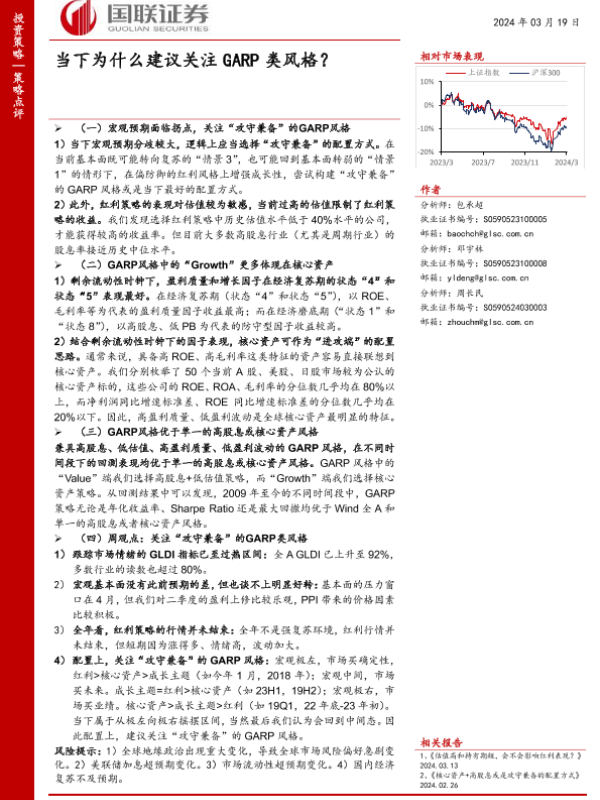 【国联证券】【20240319】策略点评:当下为什么建议关注GARP类风格?-31页 行业研究
