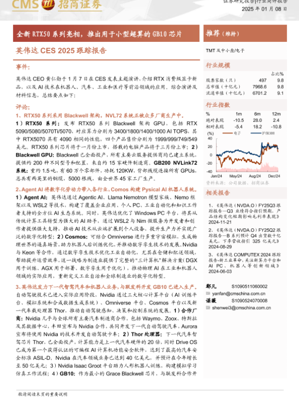 【海通证券】【20250108】电子行业英伟达CES2025跟踪报告:全新RTX50系列亮相,推出用于小型超算的GB10芯片-30页 行业研究