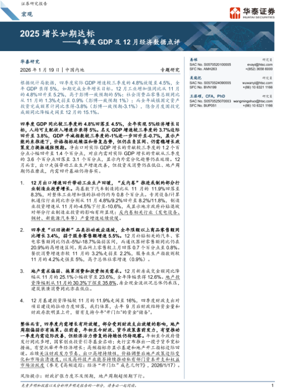 【华泰证券】【202601】2025增长如期达标——4季度 GDP及 12月经济数据点评-11页 证券期货研究报告