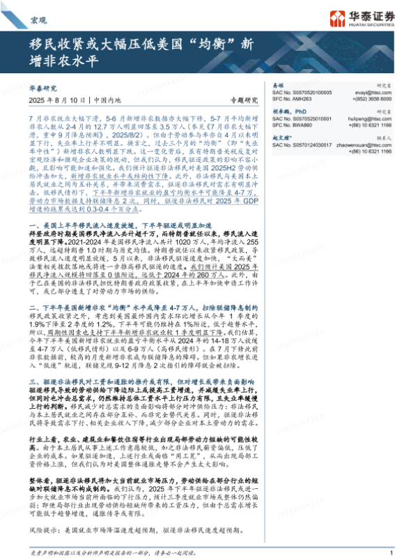 【华泰证券】【202508】移民收紧或大幅压低美国“均衡”新增非农水平-13页 证券期货研究报告