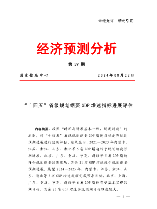 【国家信息中心】【202408】“十四五”省级规划纲要 GDP增速指标进展评估-6页 政策文件