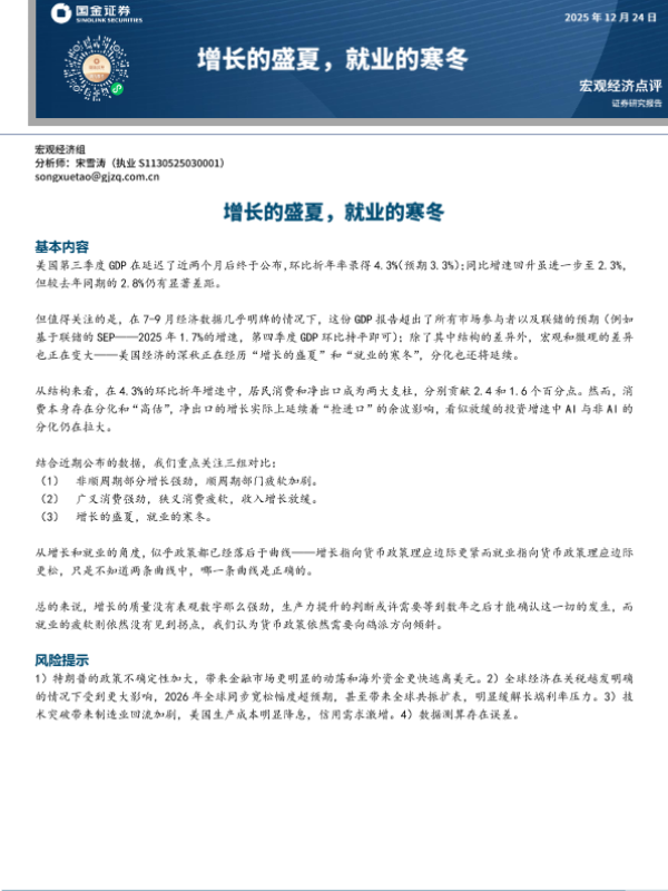 【银河证券】【202512】美国第三季度GDP点评-5页 证券期货研究报告