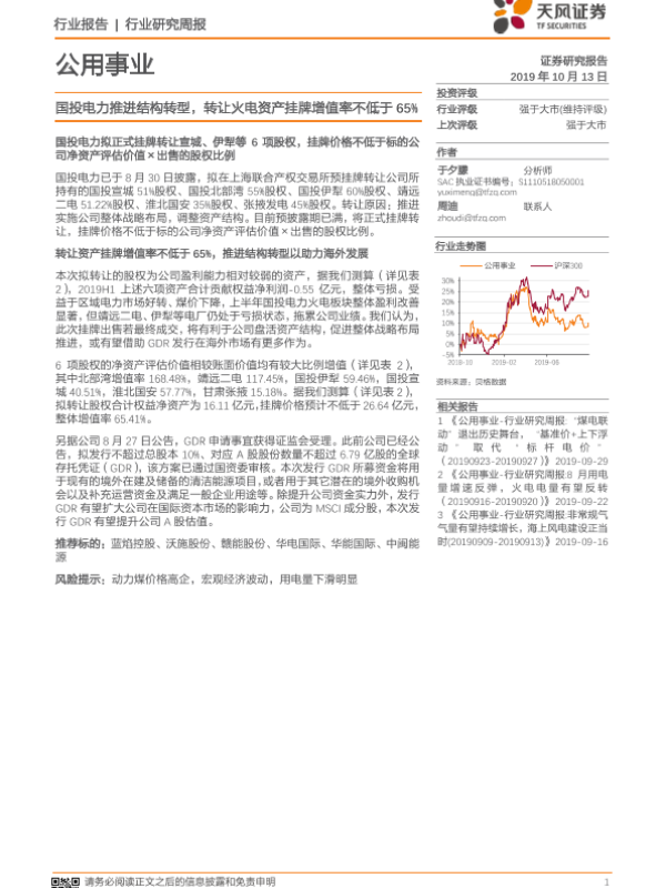 【天风证券】【20191013】公用事业行业研究周报:国投电力推进结构转型,转让火电资产挂牌增值率不低于65%-7页 行业研究