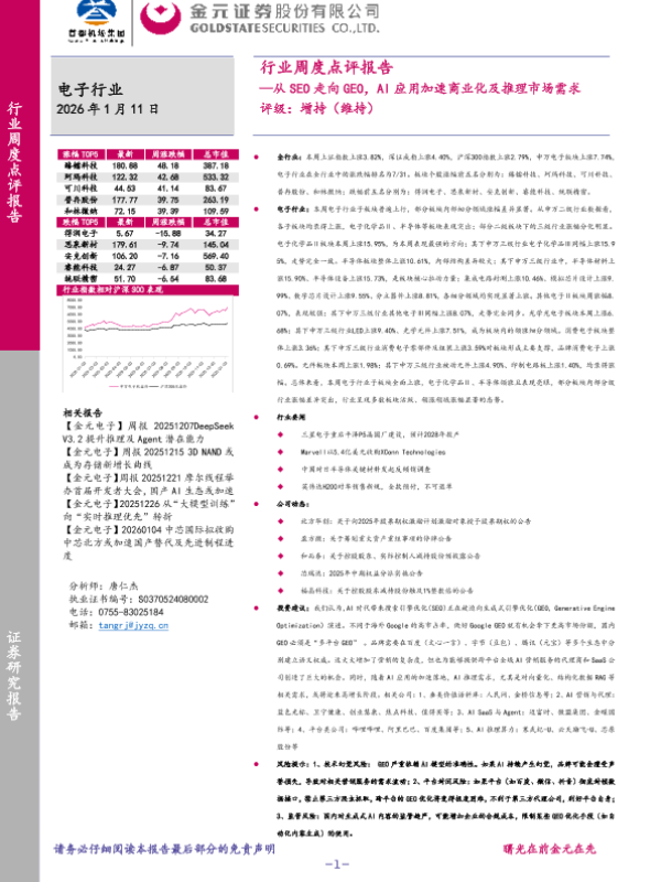 【金元证券】【202601】电子行业周度点评报告:从SEO走向GEO,AI应用加速商业化及推理市场需求-26页 证券期货研究报告