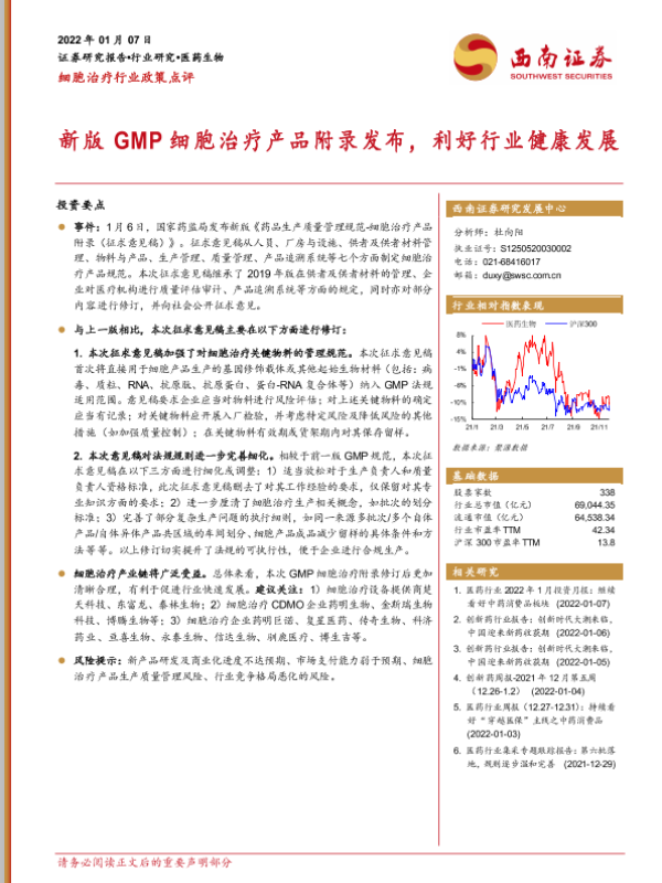 【西南证券】【20220107】新版GMP细胞治疗产品附录发布,利好行业健康发展-3页 行业研究