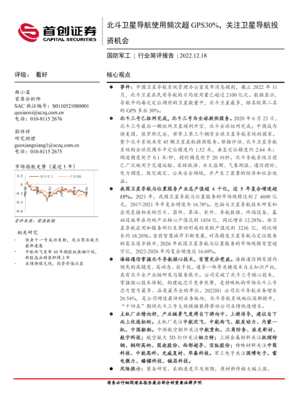 【首创证券】【20221218】20221218-首创证券-国防军工行业简评报告:北斗卫星导航使用频次超GPS30%,关注卫星导航投资机会-16页 行业研究