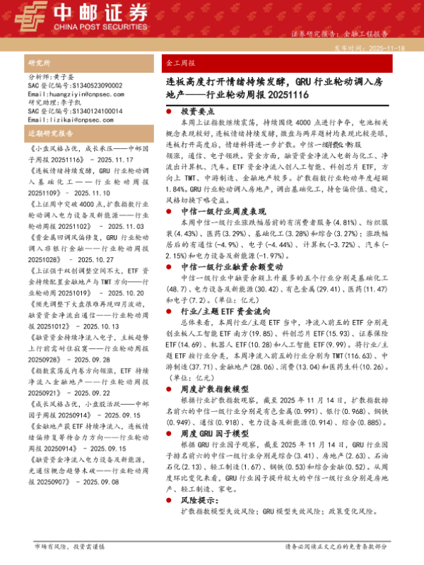 【中邮证券】【202511】连板高度打开情绪持续发酵,GRU行业轮动调入房地产-15页 证券期货研究报告