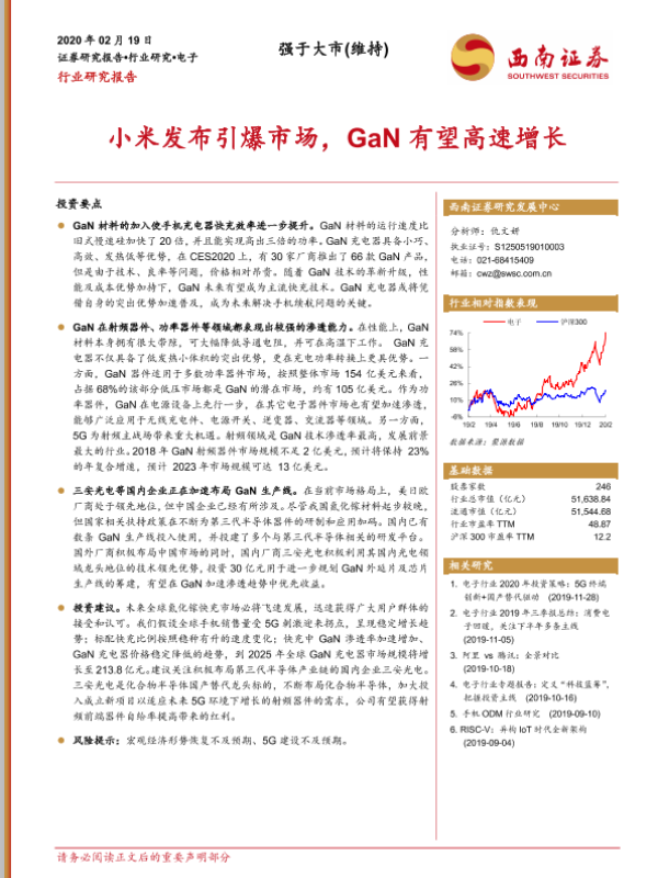 【西南证券】【20200219】电子行业:小米发布引爆市场,GaN有望高速增长-15页 行业研究