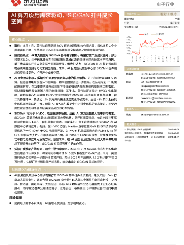 【东方证券】【20250802】电子行业动态跟踪——AI算力设施需求驱动,SiC/GaN打开成长空间-14页 行业研究