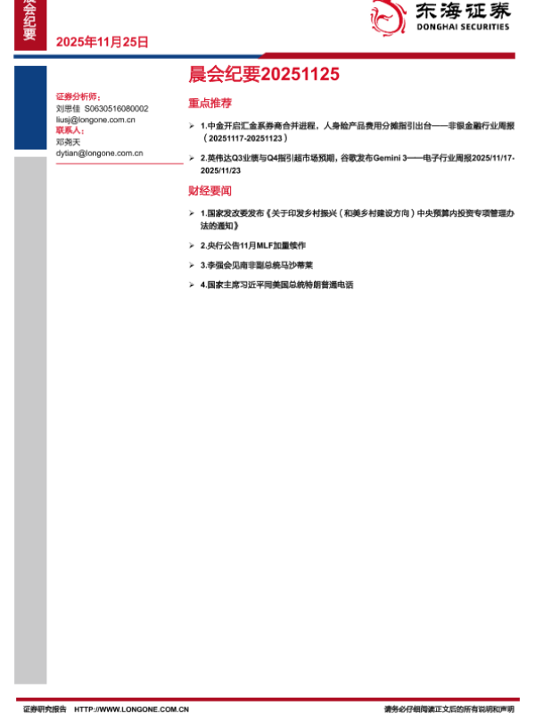 【东海证券】【202511】晨会纪要20251125-10页 会议纪要
