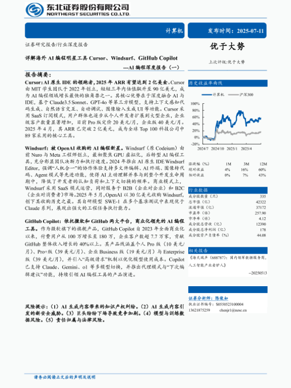 【东北证券】【20250711】详解海外AI编程明星工具Cursor、Windsurf、GitHub Copilot-31页 行业研究